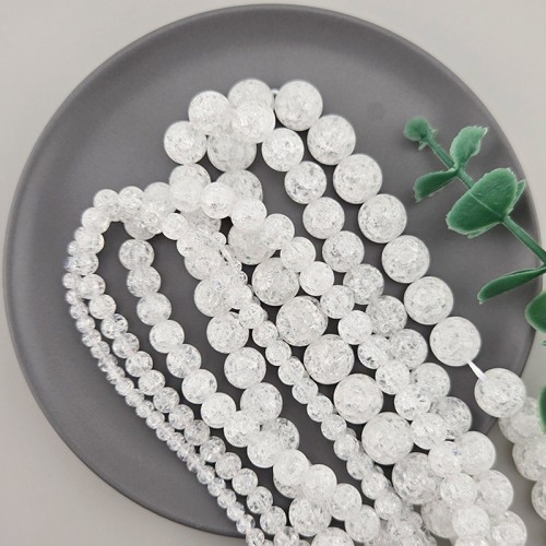 비즈팡 [J9-02-00]원석라운드 4/6/8/10/12mm 합성크랙수정 화이트 ,반줄