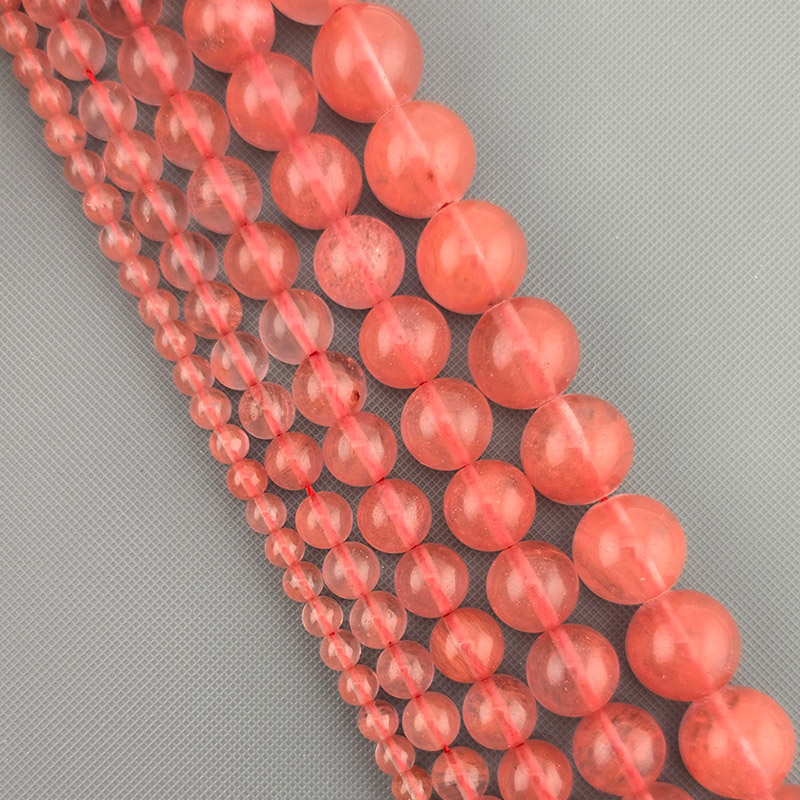 비즈팡 [J1-201-08]원석라운드 4mm잉카로즈(수박홍) ,반줄