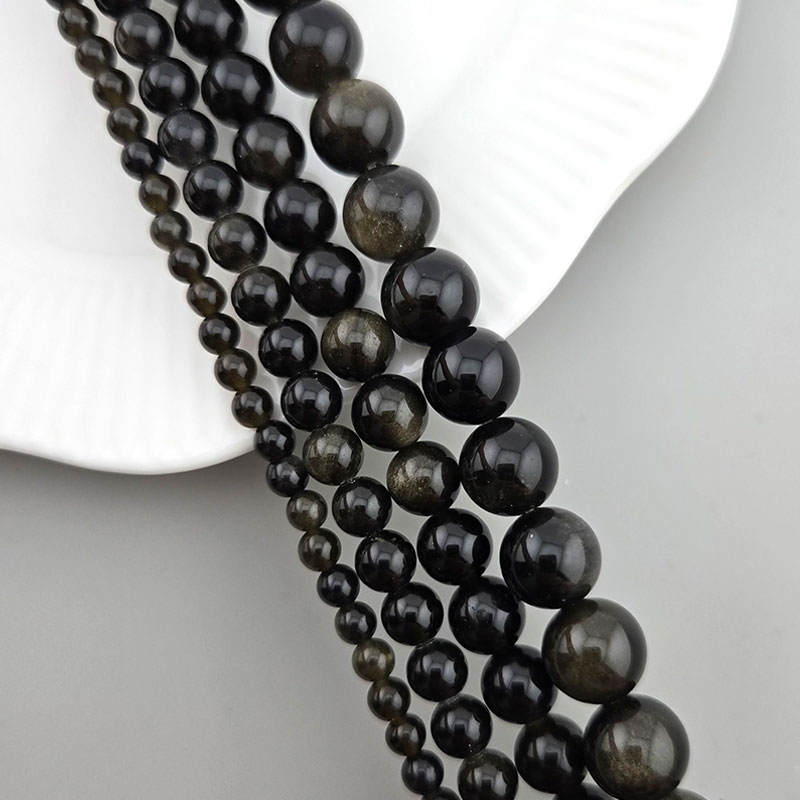 비즈팡 [J1-201-35]원석라운드 10mm 골드옵시디언(금흑요석) ,반줄