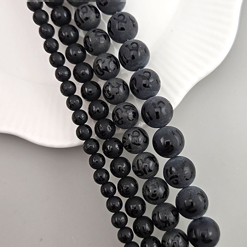 비즈팡 [J1-62-10]원석라운드 6mm 육자진언 옴자볼 옴마니반메훔볼 무광오닉스 염주팔찌용 ,반줄(28개)
