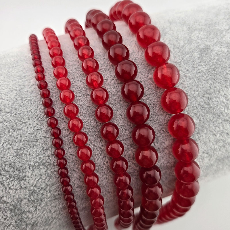 비즈팡 [J1-210-04]원석라운드 4/6/8/10/12mm 신백옥착색(레드) ,반줄