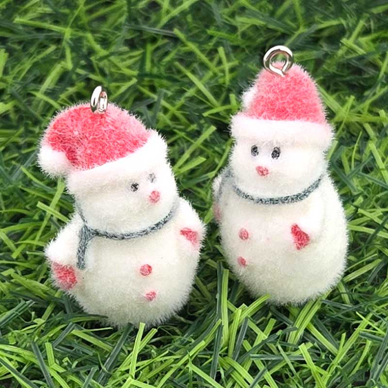 비즈팡 [PF-1-41]후로킹펜던트 빨간모자쓴눈사람 19x34mm ,1개