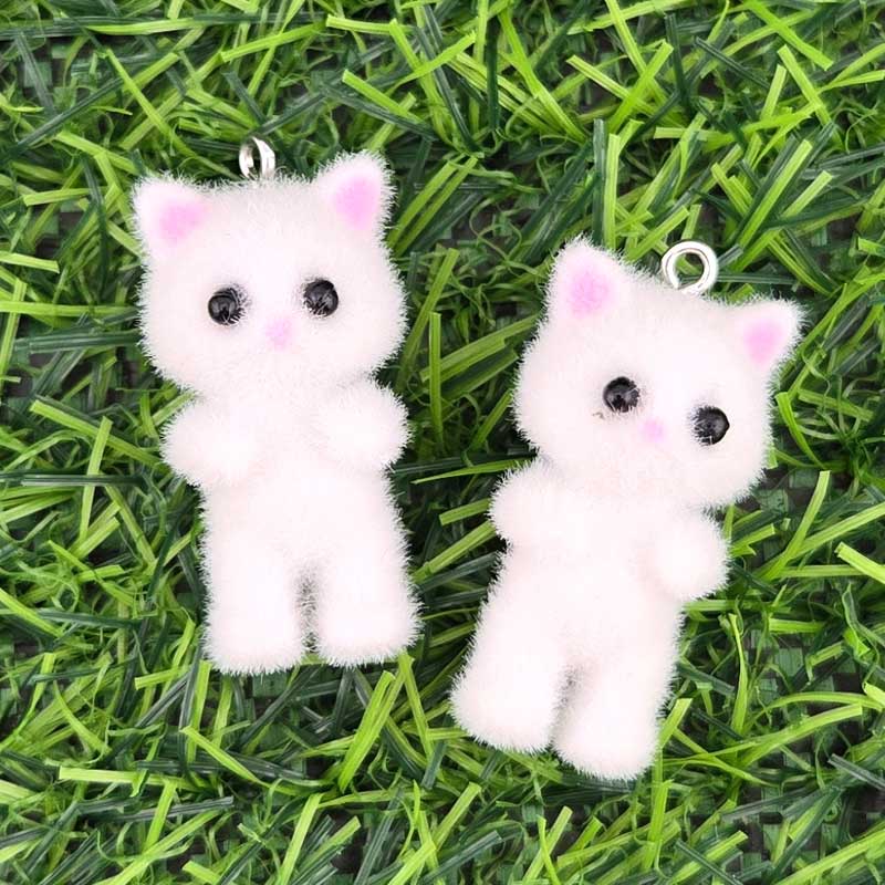 비즈팡 [PF-1-18]후로킹펜던트 서있는화이트고양이 16x35mm ,1개